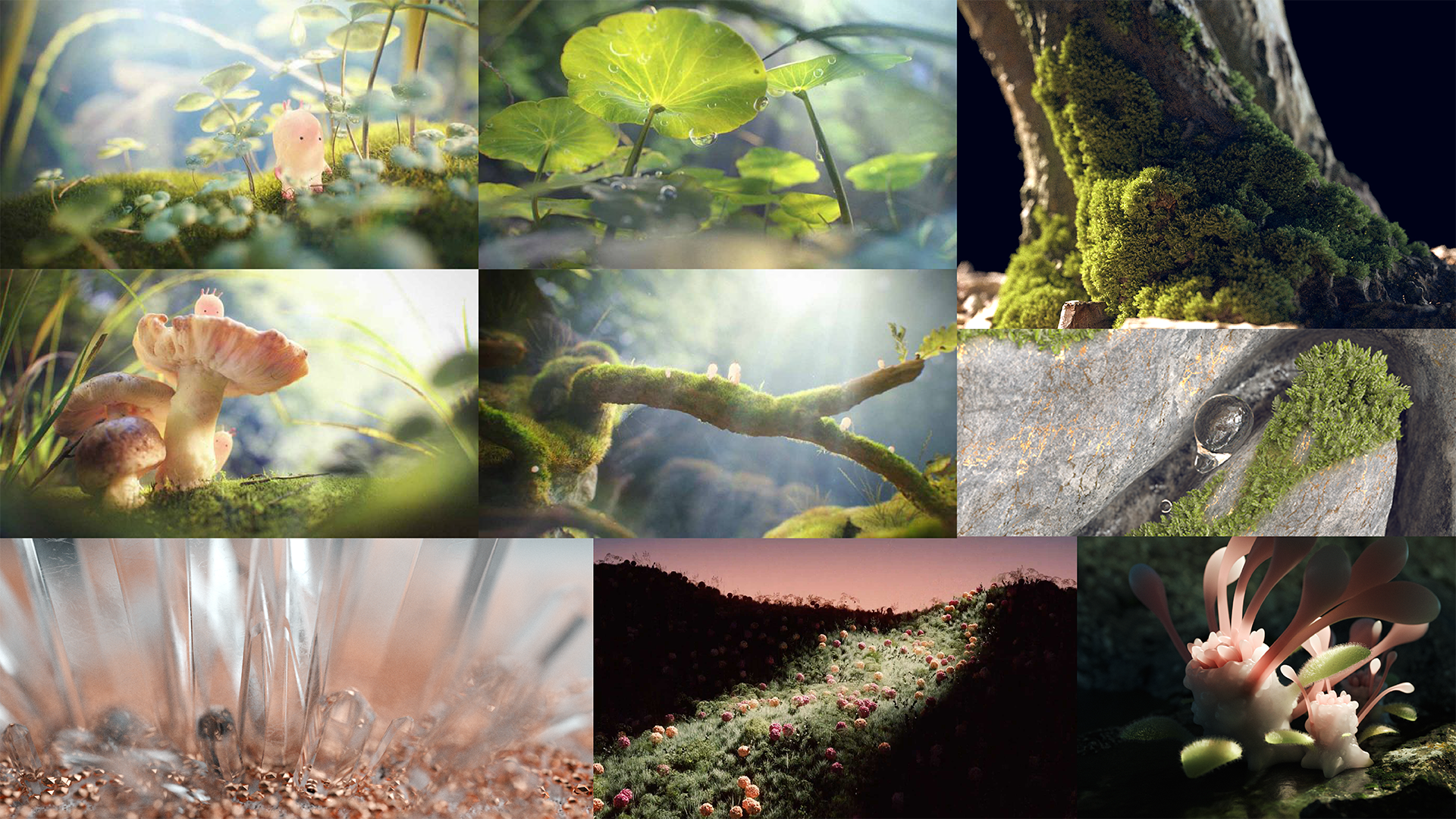 Then we moved into animation. Because the vignettes were going to be quite simple and meditative I wanted to make sure they had a real depth of vegetation and to feel like we were getting a glimpse into a fairy like world.